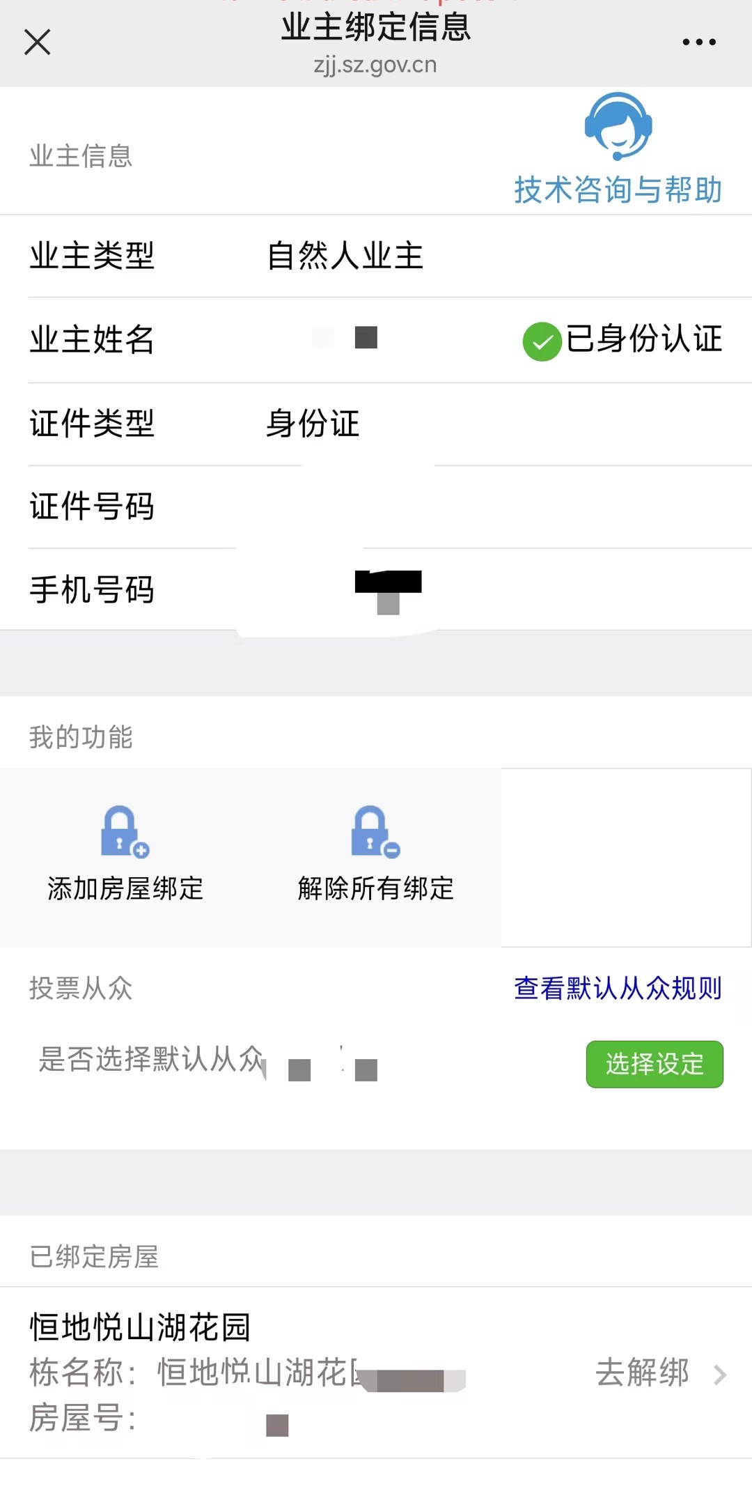 深圳市住房和建设局公众号->业务办理->物业->业主身份绑定